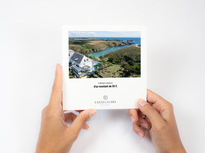 Pour faire usage de votre chèque-cadeau, contactez-nous par téléphone au 02 97 31 84 21 ou par courriel à reservation.cc@castel-clara.com